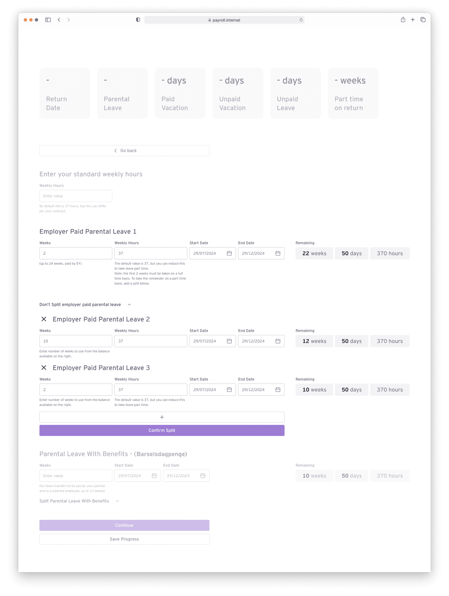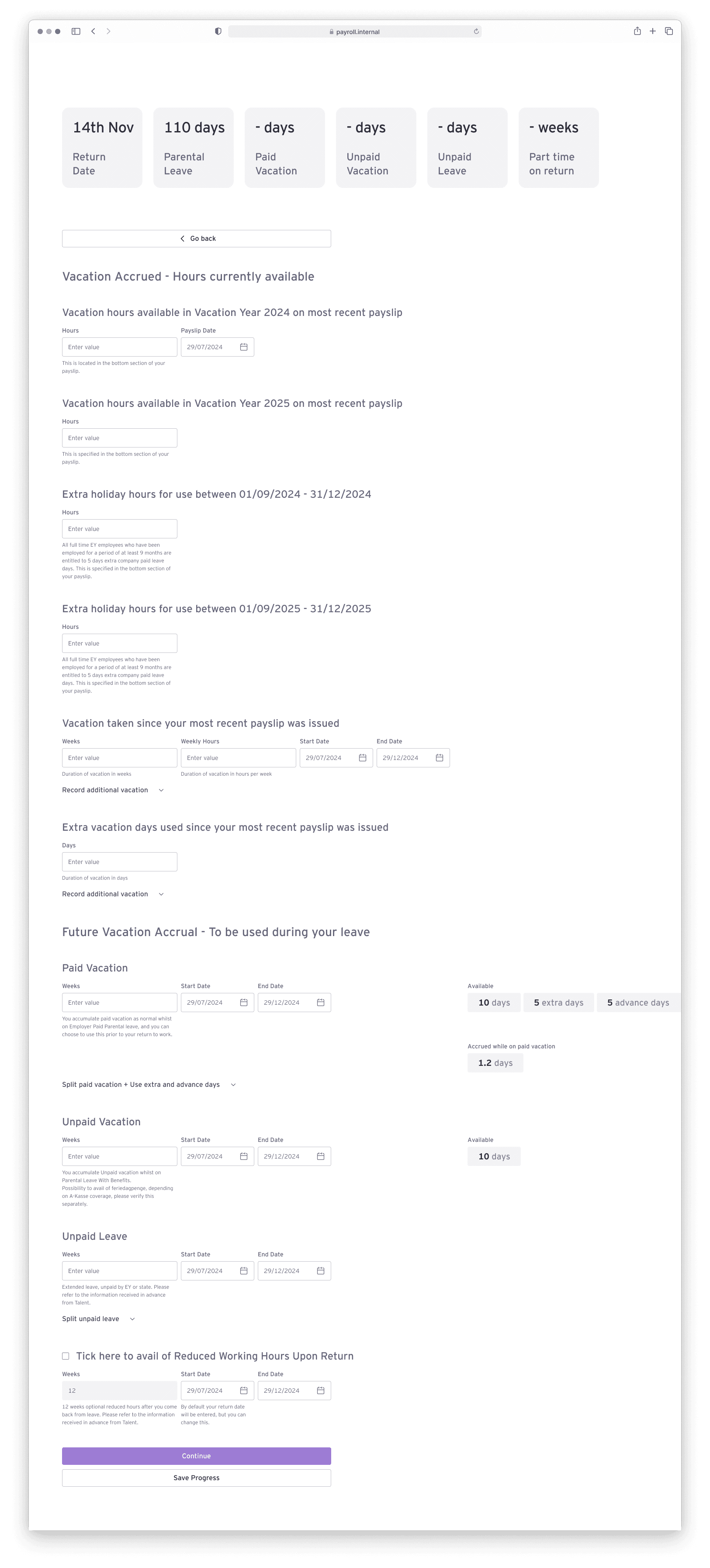 Both the Vacation Calculator and Parental Leave Planner were developed in tandem with expert stakeholders in the payroll department and tested and continuously iterated with employee feedback.