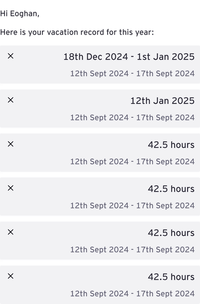 The vacation calculator provides a clean, intuitive app which neatly allows users to track their time off. It allows users to record and plan leave taken and assists them to plan their time off effectively.